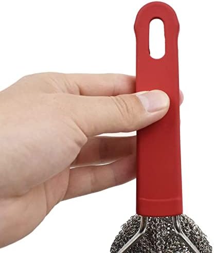 High-Quality Material: Cast iron chainmail scrubber is built for the long haul,The chainmail is made of 316 stainless steel, closely connected and durable, all rings welded closed with other rings, what means the chainmail scrubber willl never fall apart in daily use.