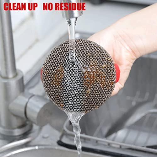 Features: Silicone handle design, stainless steel chain mail, save time and effort to brush pot, easy to clean after use.
