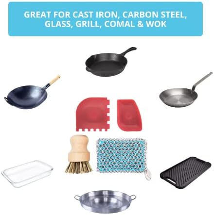 PRESERVES SEASONING – Great for cleaning & preserving seasoning on your cast iron cookware, carbon steel pan, grill pan, tortilla comal and Asian wok. (SEE PROPER CLEANING INSTRUCTIONS BELOW)