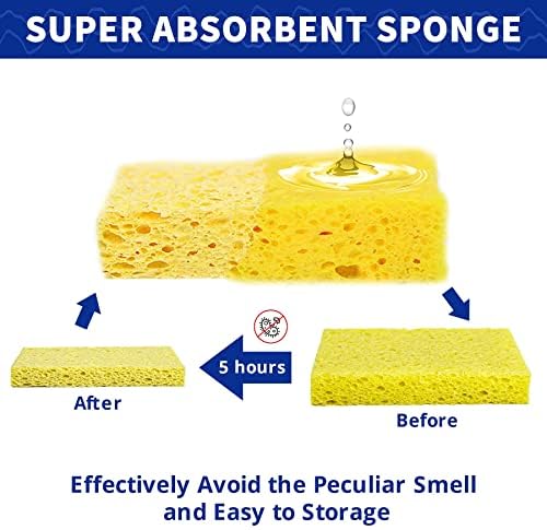【Flexible & Long-lasting】It is not easy to deform or break after kneading frequently. After finishing the work, rinse it with water to clean it up, not smelly. The cleaning sponge can be reused and durable. Please note: These cellulose sponges are wet in their initial state, this is because it contains water retention to protect the sponge against harden and dry cracking. Just wash it with water for the first time.