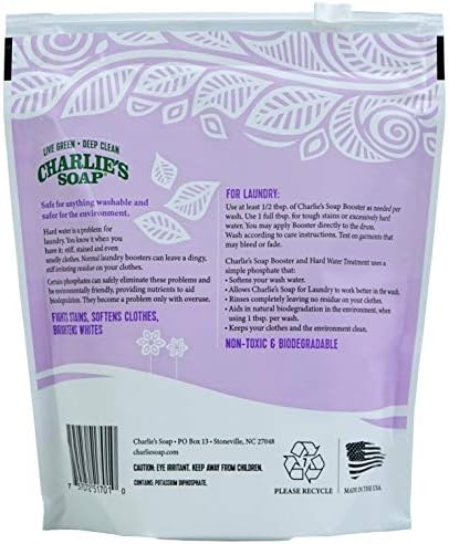Hard Water has met its match. Powerful water softening without all the chemicals. Charlie’s soap laundry booster and hard water treatment. Excellent solution if you have hard water, well water, or that extra tuff stain that just doesn’t want to go away. One half Tablespoon added to your washload along with our regular product provides supercharged cleaning power. Charlie’s Soap Laundry Booster rinses cleans leaving no residue. This booster is designed to be used only as needed, and contains a biodegradable phosphate that does not harm the environment if used as instructed.NOTE: First time users may find that it requires a few washings with Charlie’s Soap and Booster before old, previously deposited, irritating laundry detergents are completely removed. If you notice anything other than clean, soft clothes, rewash. The more you wash with Charlie’s Soap and Booster, the cleaner your clothes will get. Certain phosphates can safely eliminate problems associated with hard water and be environmentally friendly. They are only a problem with overuse. While septic safe in general, if you use it daily, you may need to periodically replenish your septic system with an enzyme and germ replenishment product.