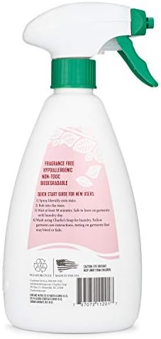 Sticky stains on your good clothes can totally ruin your day! Our environmentally friendly plant-based laundry pre-spray stain remover is your quick and easy fix. In fact, just one spray takes care of almost any stain you can create. Its gentle formula works overnight on tough stains on any fabric without fading colors. The bottle is light, easy to handle, and conveniently fits in small laundry areas. Like all of our products, our biodegradable formulas work to keep the environment and your family safe. This is not your grandmas stain remover, it is the best set in stain remover for clothes and other washable fabrics alike. Spray on the offending stain, rub into the stain with a little water and let it set from 20 min. to overnight. Then toss in your machine with the usual load and was as normal. NOTE FROM THE MANUFACTURER: The included sprayer head that comes unassembled in this combo has an extra long bendable pickup tube. Just place sprayer in open bottle and allow the tube to flex as the sprayer is inserted and tightened, no need to trim. This is normal and allows for maximal use of the product with little to no waste.