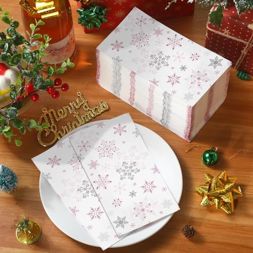 Christmas theme design: these Christmas dinner napkins are printed with chic snowflake patterns, beautifully designed to compliment many tables, full of Christmas and holiday atmosphere and bring fun for you