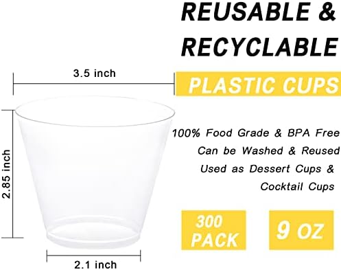 Suitable Occasions: Clear plastic cups are suitable for weddings, baby showers, birthdays, Thanksgiving, Christmas, Halloween party, family reunions and other activities. These 9 oz disposable plastic cups can be easily disposed or recycled after using.