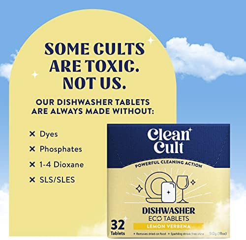 Cleancult Dishwasher Pods, Lemongrass, 32 Pods – 100% Dissolvable Dishwashing Tablets – Made From Coconut Surfactants – Wrapped in Dissolvable Film – Leaves Dishes Clean & Spotless