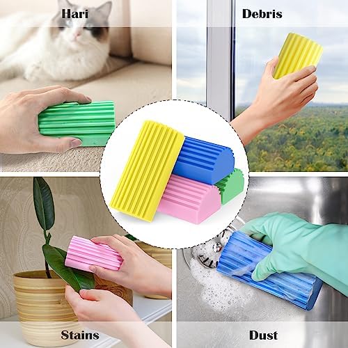 🏠Efficient dust removal: High-density scrub duster for cleaning like a magnet attracts all dust, pollen, pet hair, etc.. Everything is trapped in the household duster sponge tool and will not raise the dust in the air.