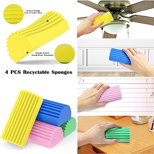 🏠4*Reusable Damp Clean Duster Sponge: The packaging box contains 4 dusting scrub sponges for cleaning, and each duster tool is sealed and packaged separately, which can be reused frequently.