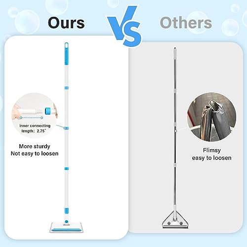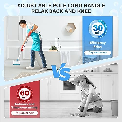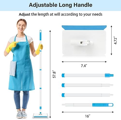 【Baseboard Cleaner Tool with Long Handle】 The extendable stainless steel handle length can be adjusted from 32″, 48” to 57.8″ without bending or climbing. After the upgrade, the inner connecting parts of the pole are 2.75”, which makes the handle stay more stable and not loosen while cleaning. Release your back, no more bending, stretching, kneeling or crouching.