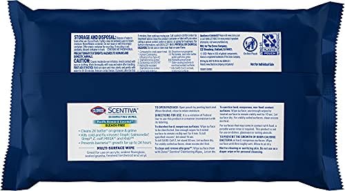 Clorox Scentiva Disinfecting Wipes in a convenient easy to pull dispensing pack make cleaning easy. These wipes combine the trusted cleaning and disinfection power of Clorox with the captivating scent of Pacific Breeze & Coconut to transform your entire home. Clorox Scentiva scents are well-crafted, curated, inviting blends that will elevate your cleaning experience. These cleaning wipes are bleach-free and multi-purpose and powers through tough grease and grime with ease and prevents bacteria* growth for up to 24 hours. Use these disinfecting wipes for garbage cans, kitchen countertops, sinks, bathroom surfaces, appliances, and car interiors. Utilize these multi-surface wipes to cut down on your necessary cleaning supplies and quickly wipe away an array of messes. Safe to use on most surfaces and around pet areas, Clorox Scentiva Disinfecting Wipes eliminate 99.9% of germs, including COVID-19* Virus, while filling your home with uplifting, long-lasting scents. *Kills SARS-CoV-2 on hard, nonporous surfaces; *odor causing bacteria on non-food contact surfaces.