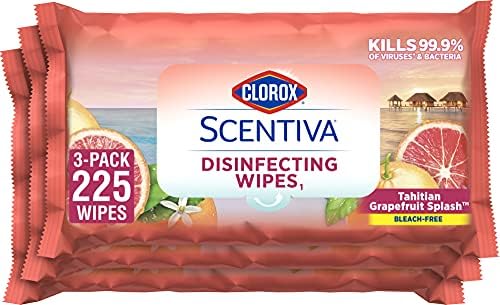 Clorox Scentiva Wipes, Bleach Free Cleaning Wipes – Tahitian Grapefruit Splash, 75 Count (Pack of 3)