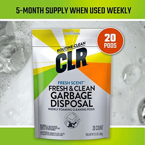 How do I use CLR Fresh & Clean Garbage Disposal? Start with empty sink and disposal. DO NOT TURN ON DISPOSAL. Run hot tap water full force for 1-2 minutes directly into garbage disposal. Reduce tap water to pencil width stream away from the drain – off to side of the sink, not directly into drain. With disposal off, and water still at a stream INSERT ONE UNOPENED pod completely into disposal. Turn on garbage disposal. White cleaning foam should rise into the sink or both sides if using in a double sink. Run disposal until foam retreats from sink into disposal (1-2 minutes). Turn off disposal and tap water.