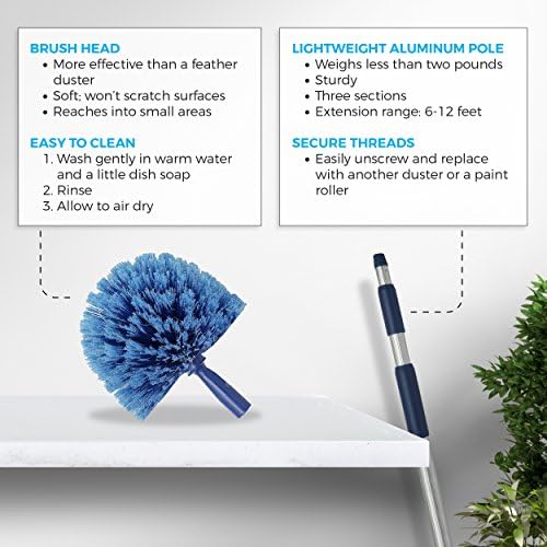 LIGHTWEIGHT ALUMINUM POLE – The pole of this cobweb duster is made from lightweight aluminum. It weighs less than two pounds making it extremely easy to lift when you are trying to reach high locations. While the pole is lightweight it is also sturdy