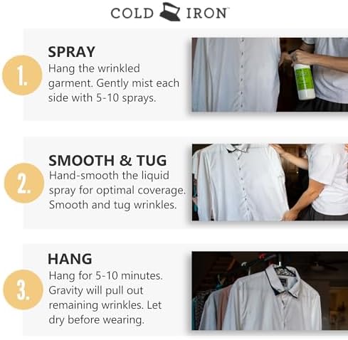 Cold Iron wrinkle release spray is great for those on-the-go or anyone simply wanting to look their best. Since 2012 our award-winning plant-based formula has helped people worldwide look their best without having to iron.