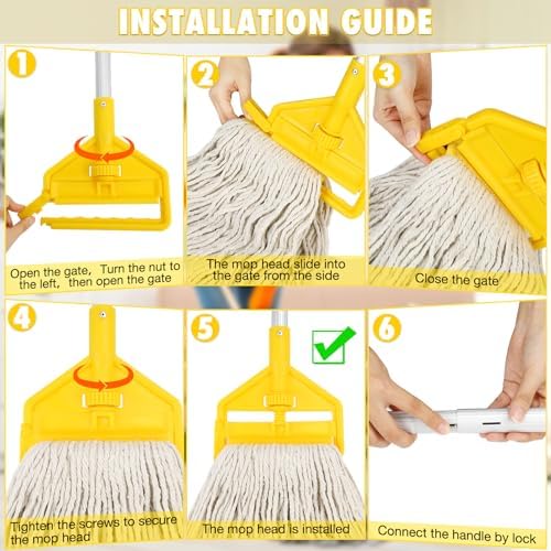 【Upgrade Looped-end Clamp Mop】Heavy duty mop with newly upgraded Looped-end clamp, which can hold the mop head firmly, that is more durable and stable than other plastic clips. So you no longer have to worry about the mop head falling off or loose during use .Easy to install and removing ,match with most mops, such as cotton, string, looped, microfiber mops.