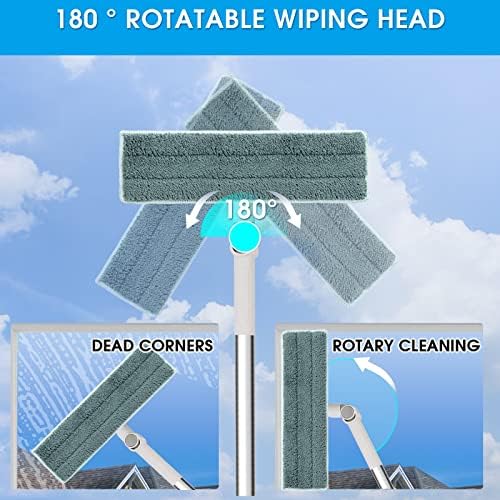 Coopvivi Window Squeegee, 2 in 1 Window Cleaning Combo Tool, Window Cleaning Tool Kit with 67” Long Extendable Handle for Indoor & Outdoor, Car, Shower, Mirrors, Sliding Door (Gray)