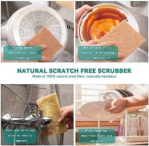 Natural Scouring Pads (5Pack) – Eco Friendly Scrubbing Pads forKitchen Cleaning, Dishes, and Pots -Non-Scratch Kitchen Scrubbers – 100% Natural Sisal Fibers