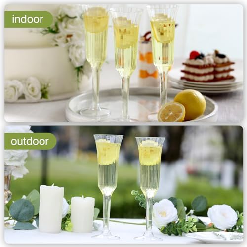 Disposable Convenience: Crafted for effortless entertaining, these disposable champagne glasses ensure a hassle-free cleanup, so you can focus on enjoying the event without worrying about washing dishes.