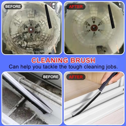 🧹【Multi-purpose Gap Brush】The gap brushes and the clothes dryer lint brushes are new and up-grated cleaning tools, Ideal for cleaning All tile surfaces, shower door rails, sink drains, oven and turntables,Kitchen, bathroom faucets, corners, sliding door rails, window frames, the dust and pet hair under furniture and appliances groove cleaning brush.