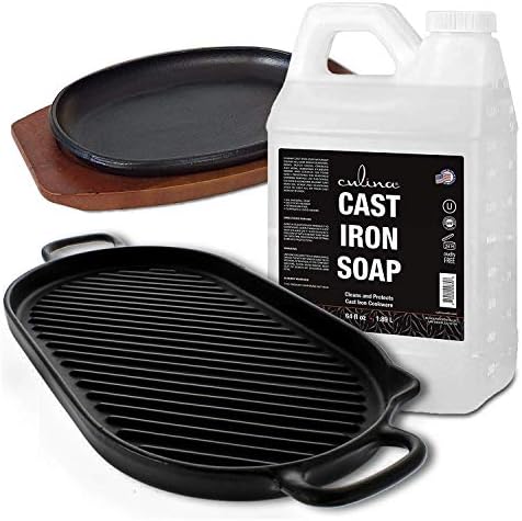 100% Plant-Based Cast Iron Soap Set designed to build & maintain the best natural non-stick seasoning for your cast iron skillets, pans, woks or grills. Made with a solvent-less refined coconut oil base that unlike our competitors is safe & guaranteed to never go rancid. Designed to season & condition cast iron while protecting cookware from moisture that leads to damage & rust. Makes cleaning cast iron easier by creating a seasoning that is non-stick & prevents food from drying on. | – IDEAL FOR – | Cast Iron Skillets, Cast Iron Pots & Frying Pans, Cast Iron Grills & Griddles, Cast Iron Woks, Cast Iron Dutch Ovens, Cast Iron Cookware. INGREDIENTS – SOAP: Water, Organic Castile Soap, Glycerin, Proprietary Blend of Pure Essential Oils.