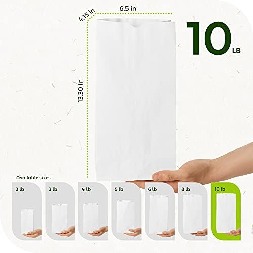 DURABLE PAPER BAGS – Our white paper bags feature side gussets and a box bottom for free standing and easy packing. It also has a notch on top for easy opening. Buy these bulk in 500 counts.