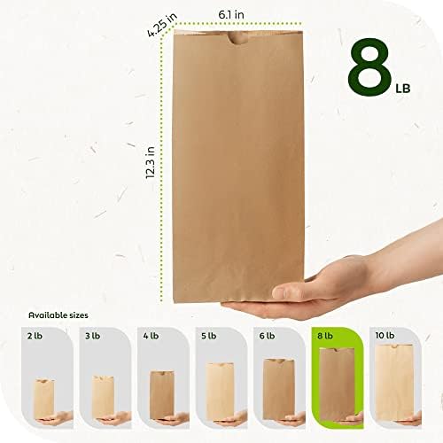 Culinware Kraft Paper Bags 8 Lb – Durable Brown Paper Bags for Snack, Lunch, Sandwich, Pastries, Popcorn, Grocery and Party Favor – Bulk Paper Bags – 6.1 x 4.25 x 12.3 In – 500 Count