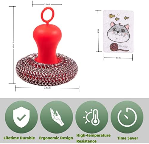 🛑𝐍𝐄𝐖 𝐑𝐄𝐋𝐄𝐀𝐒𝐄𝐃 𝐂𝐇𝐀𝐈𝐍 𝐌𝐀𝐈𝐋 𝐒𝐂𝐑𝐔𝐁𝐁𝐄𝐑—The Cast Iron Scrubber Chainmail is the perfect tool for cleaning your cast iron skillet. scrubber adopts BPA-free and heat-resistant silicone of a large size. Silicone handle provides comfortable grip and enables you to apply less force when you use it to clean.The chainmail made from high-quality stainless steel,it was designed to remove even the toughest buildup and stains without damaging the surface of your cookware.