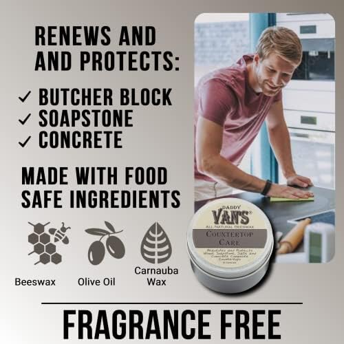 Daddy Van’s gives your countertops a silky, smooth feeling and maintains the matte finish that is so desirable in soapstone, slate, and butcher block countertops.