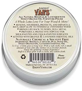 A LITTLE DADDY VAN’S GOES A LONG WAY! To Use: A little Daddy Van’s goes a long way! With a soft cloth, rub a small amount of wax onto surface in a circular motion. Buff with a clean, dry cotton cloth and you will be rewarded with the healthy glow of the wood, shining as if from within.