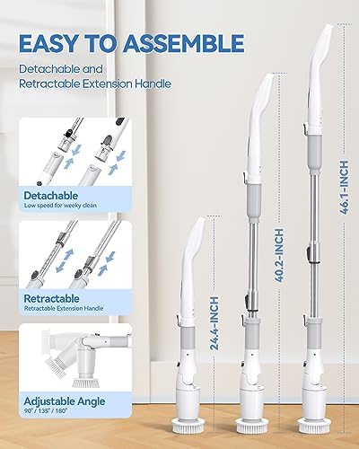 🌊【Extendable Handle & Adjustable Angle】Adjust the lengths of the spin scrubber from 24.4in to 46.1in by its coming extendable stainless-steel rod. Easy to clean stains that hard to reach. There are 3 angles of brush head helps cleaning in different environment.