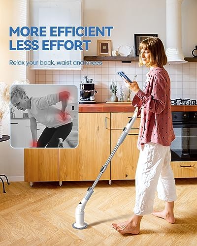 🌊【Ideal Gift for Family and Friends】No bending and no kneeling. This electric scrubber for cleaning with ergonomic handle is lightweight and cordless, which is ideal to be a gift to your family and friend, especiall the elder and people who has serve pains with back and waist.