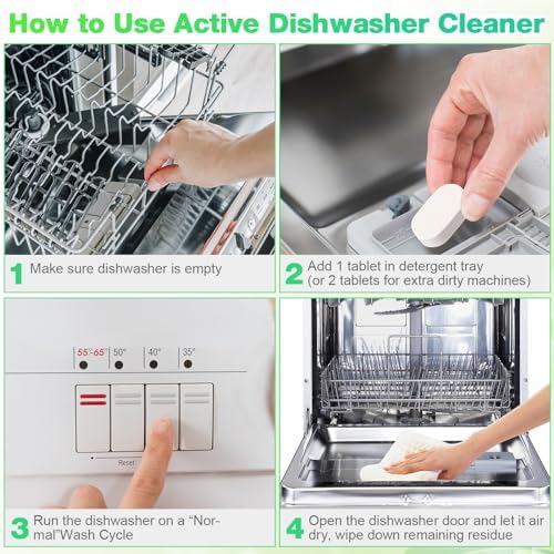 Simple to Use: you only need to put one dish washer clean pods directly into the detergent dispenser, turn on the wash mode, and after the cycle is completed, you will have a clean and fresh dishwasher; It is recommended to clean twice a month regularly