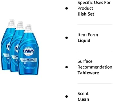 Dawn Ultra Liquid Dishwashing Dish Soap, 3X More Platinum Advanced Power Clean – 24 Fl oz x 3 Count (Total 72 Fl oz) Your toughest everyday messes are no match for Dawn Platinum dishwashing liquid. In just seconds, Platinum takes on the baked-on, even 48-hour stuck-on food. With 3X the everyday grease-cleaning power per drop*, Dawn Platinum with Instasoak action is our best dish detergent. *Based on cleaning ingredients vs. non-Ultra Dawn. Helping Save Wildlife for More Than 30 Years Independent studies have proven Dawn dish soap to be the most effective dishwashing detergent for cleaning oiled animals, heralded because it removes tough grease while being gentle on animals’ delicate skin and feathers. As such, Dawn is the only dishwashing brand trusted by wildlife rescue experts for decades. Since 2006, Dawn has donated more than 100,000 bottles of dishwashing liquid and financial support to its wildlife partners, International Bird Rescue and The Marine Mammal Center. These donations have helped these organizations clean more than 75,000 marine animals in the United States.