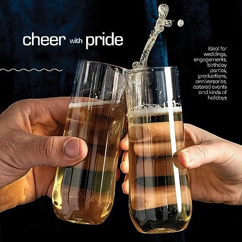 Made In USA – Our mega pack of 24 champagne plastic glasses are crafted in the USA with premium quality materials and attention to detail, these plastic flutes are sure to impress your guests. A great choice for those who value quality!