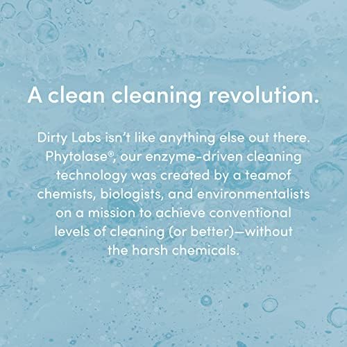 Dirty Labs is pushing an outdated industry forward. Most cleaners today use cleaning technologies that were developed almost 100 years ago. While laundry cleaning has evolved over time with some updates and improvements, deep-cleaning formulas still rely heavily on harmful, petroleum-based chemicals. Dirty Labs is different. By combining advanced enzymes and next-generation biobased ingredients, we created Phytolase, a unique, enzyme-driven cleaning technology that delivers exceptional cleaning power without toxic chemicals. Precision targeting: Each enzyme class in Phytolase is designed to target a specific type of stain. Once an enzyme finds its specific stain, it breaks that stain down into simpler component pieces that lift and rinse away. Active stain processing: After working on one stain, enzymes actively target new stains and continue breaking down more stains throughout the duration of the wash cycle. Synergistic, full-spectrum coverage: In addition to enzymes, Phytolase utilizes plant and sugar-derived surfactants to unlock additional enzyme performance and break down grease and oils. Together, they bolster each other to provide exceptional, deep cleaning on a full spectrum of tough stains. Anti-redeposition: With traditional detergents, stains can often redeposit back onto clothing and fabrics during the wash cycle. Our enzymes break down stains into water-miscible component pieces, allowing stains to lift and rinse away with your wash water. Brighter colors: Our biobased ingredients are gentler on clothing and have demonstrated better color stability and reduced color bleeding in fabrics. Phytolase also removes dirt and microfibrils that make your clothes and fabrics look dull and less vibrant—meaning newer-looking clothes that can be worn for longer.