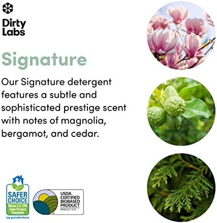 SPECS: 21.6 fl oz = 80 loads. Signature Scent (Magnolia, Bergamot, & Cedar). Pump holds over 40 medium / standard size loads (375mL). Plastic-free, BPA-free, and recyclable cardboard packaging.Compatible with traditional and HE washers. Optimized for cold water. Certified EPA Safer Choice Partner. 97% USDA Biobased certified. No sulfates, dyes, parabens, preservatives, chlorine bleach, or CA Prop.65 Chemicals.
