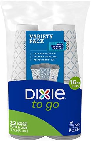 Dixie To Go Disposable Paper Cups with Lids are great for busy mornings when you want to take your coffee, tea, or other hot beverage with you to work or school. Dixie To Go cups features an insulated non-slip grip that reduces the need to double-cup or use sleeves when you’re sipping hot coffee. Plastic lids snap on easily and securely to help prevent leaks, splashes, or spills (especially on white shirts). BPA is not used in or intentionally added to Dixie To Go Lids. These handy cups measure 5.5nch tall and fit under many single-serve coffee makers so you can brew your coffee directly into the cup. All Dixie-branded paper bowls, cups, and plates manufactured in Georgia-Pacific facilities are kosher certified by the Orthodox Union. Stock up today! Dixie To Go may be recycled if you have access to a recycler that accepts paper products containing food residue. Such facilities may not exist in your area.