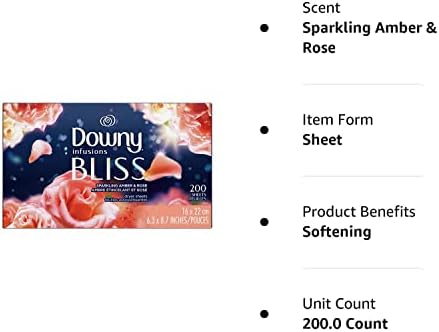 Find happiness in the little things by changing how you do laundry. Downy Infusions Bliss Fabric Softener Dryer Sheets combine the sweet scent of amber and rose for clothes that smell as vibrant as they look. Scented sheets refresh clothes to keep them soft and help prevent laundry static. Safe for all fabrics and dryers, simply load your machine, toss in a laundry sheet, and dry your clothes. For even more mood-sparking scents, try Downy Infusions Bliss In-Wash Scent Booster Beads and Fabric Softener.