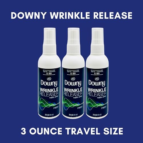 EFFORTLESS WRINKLE RELEASE: Handy 3-ounce bottles of Downy Wrinkle Release spray make smoothing wrinkles from clothing a breeze no matter where you are.