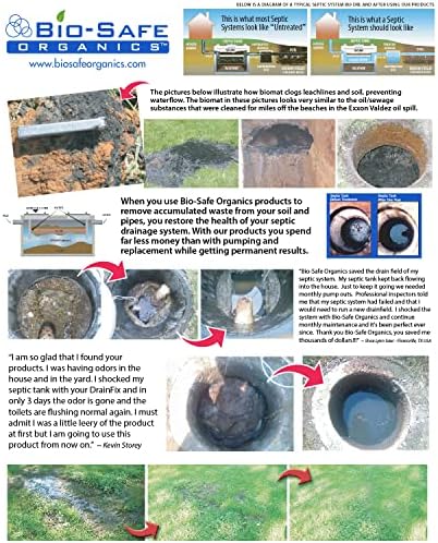 100% Safe to People, Pets, Animals & Plumbing. 100% Powerful, Safe and Effective Organic Powerful Formula treats all septic tank systems of all types, cesspools, RV’s, city dwelling plumbing, commercial systems, residential systems. Removes Large Amounts of Sludge and Biomat waste, grease, fats, hair, soap scum. No negative effect on plastic, metal or anything. Safe to use.