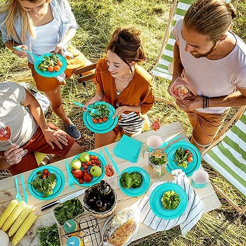 Teal Blue Dinner Items: this set of dinnerware is designed in teal blue, which is simple and elegant, can add a sophisticated feel to your centerpieces, and is ideal for your teal-themed parties
