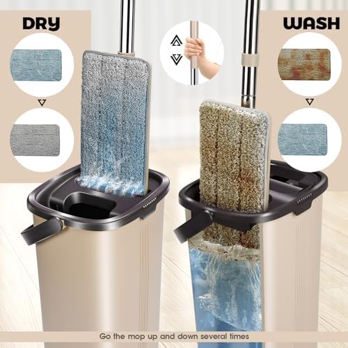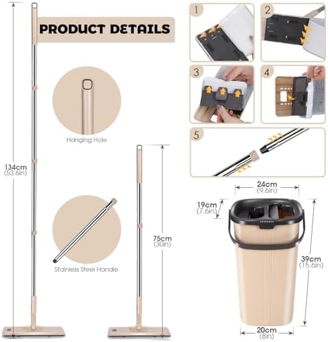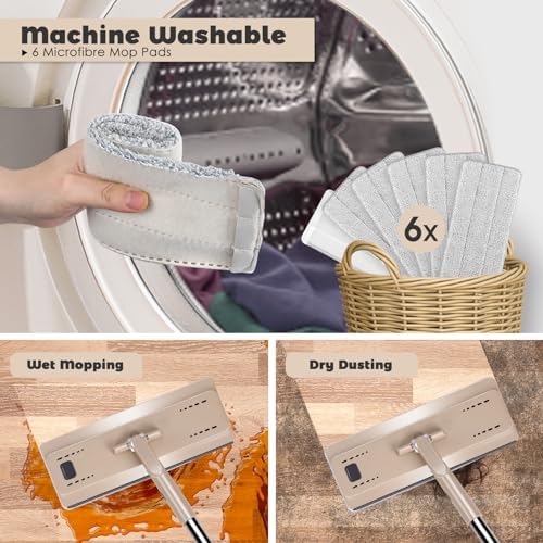 6 Replacement Mop Pads:Each set comes with 6 microfibre Mop Pads, machine washable and reusable. The mop can be used both wet and dry, with strong water absorption, it can quickly remove hair, dust and oil. The design of the socket and velcro serves as a double fixing effect for the Mop Pads.