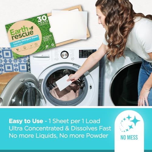 NO MESS: The Earth Rescue Detergent sheets are designed to be mess-free. Unlike liquid detergents that can spill or powder detergents that can create dust, these detergent sheets eliminate the risk of messes during handling and use. Our detergent sheets are designed for use in standard washing machines, including top-loading and front-loading machines. Tip: Toss laundry detergent sheet directly into the washer tub with clothes, do not put the sheet in the detergent tray.