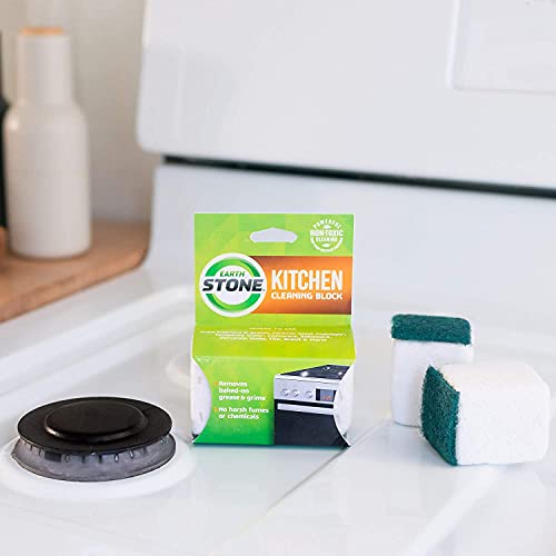 KitchenStone environmentally friendly cleaning blocks clean stubborn burned-on food, rust, and stains from ovens, stoneware, ceramics, glassware, pots, pans, stove burners, and other cooking surfaces.