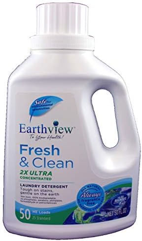 Earthview Natural Fragrance Free Laundry Detergent has been formulated to exacting standards to quickly remove ground in dirt and tough stains. It provides gentle care and protection for your fabrics. This 2x formula is ultra-concentrated and color-safe, requiring only one ounce per HE load. Friendly to you and the environment without any harsh chemicals or phosphates, it is non-toxic, 100% biodegradable with a recyclable bottle and lid. Designed for those with multiple chemical sensitivities (MCS), so Earthview items are always fragrance free, without phalates, formadehyde, SLS or harmful chemicals.