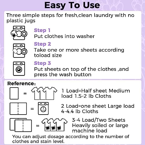 Easy Dissolving: The sheets dissolve quickly in both hot and cold water, making them suitable for all types of washing machines, including high-efficiency (HE) machines. They can also be used for hand washing without residue or clumps, ensuring soft and great-smelling clothes.