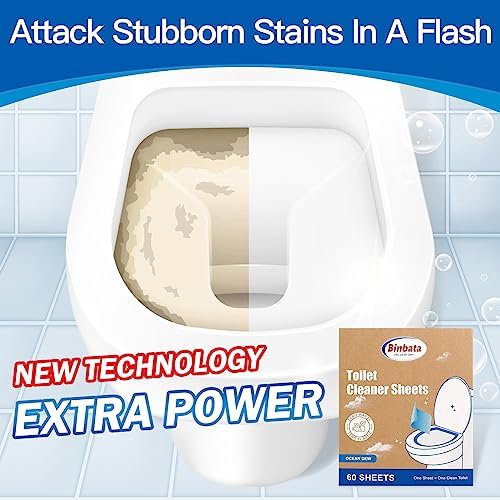 Eco Friendly Toilet Cleaners – Binbata 60 Strips Quick Foaming Toilet Cleaner Sheets, Efficiently Remove Stains with Ocean Dew Scent, Safe Neutral Pre-Measured Disposable Toilet Cleaning Strips, Plastic Free Biodegradable