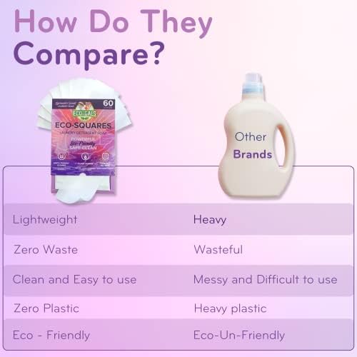 Eco-Squares are the most efficient laundry sheet out there. A concentrated, plant based, dry soap strip, Eco-Squares are over 34 times lighter that a gallon of generic liquid detergent, making Eco-Squares easy to travel with. Plus we use zero plastic in our packaging so that you can rest easy knowing you are getting an environmentally friendly product that is biodegradable.