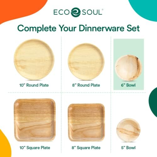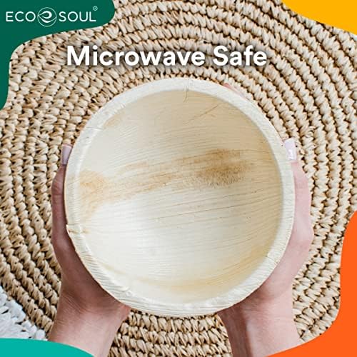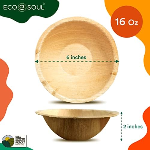 ECO SOUL 100% Compostable Large 6 Inch 16 Oz Palm Leaf Bowls [20-Pack] Disposable Dessert Bamboo Style I Heavy Duty Eco-Friendly Sturdy Bowl Biodegradable Eco
