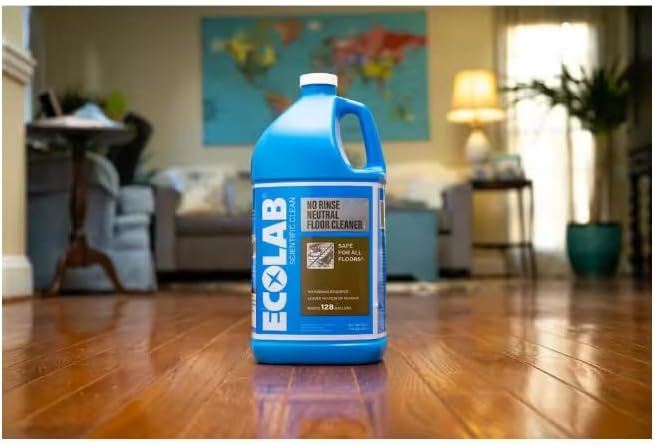 No Rinse Neutral Floor Cleaner simplifies daily floor cleaning by providing exceptional versatility, safety and value. Its neutral pH formulation allows it to effectively, yet safely clean all types of water-washable floors without damaging the finish and leaving film or residue. It safely cleans and preserves the floor shine while leaving a fresh clean scent. There are many options for applying this cleaner including string mops, spray mops, spray bottles and auto scrubbers to name a few. The formula requires no rinsing and makes up to 128 Gal. of solution, saving both time and money. Neutral pH daily floor cleaner Safe for all sealed water-washable floors No rinsing required Makes 128 Gal. of solution Preserves floor finish shine Ideal for use with string mops, spray mops, spray bottles and auto scrubbers Excellent performance on vinyl, vinyl composition tile (VCT), wood, terrazzo, concrete, marble, granite and other natural stone Use with Ecolab high gloss wet look floor finish and high traffic low maintenance floor finish to preserve shine Fresh, clean scent