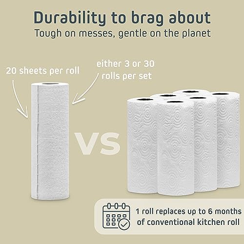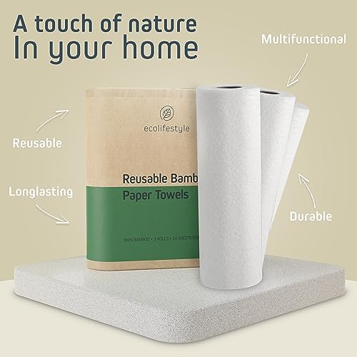 Ecolifestyle Reusable Bamboo Paper Towels washable | 3 Rolls of washable paper towels with 20 Sheets each | Kitchen Cleaning Rolls Alternative Paperless Towels | Eco Friendly Products
